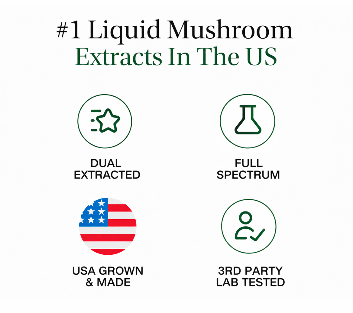 We use a double extraction process to ensure you’re getting both water-soluble and alcohol-soluble compounds. Plus, every batch is bottled right here in the US with quality top of mind.