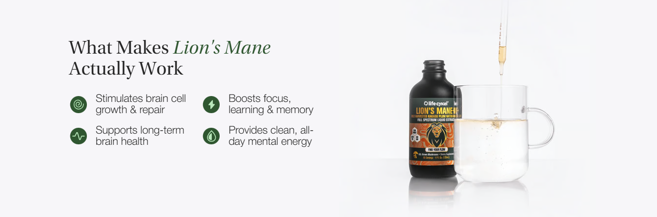 Our Lion’s Mane extract has a naturally earthy, slightly bitter taste — common to many functional mushrooms. It’s often taken with coffee, tea, or water to suit personal preference.